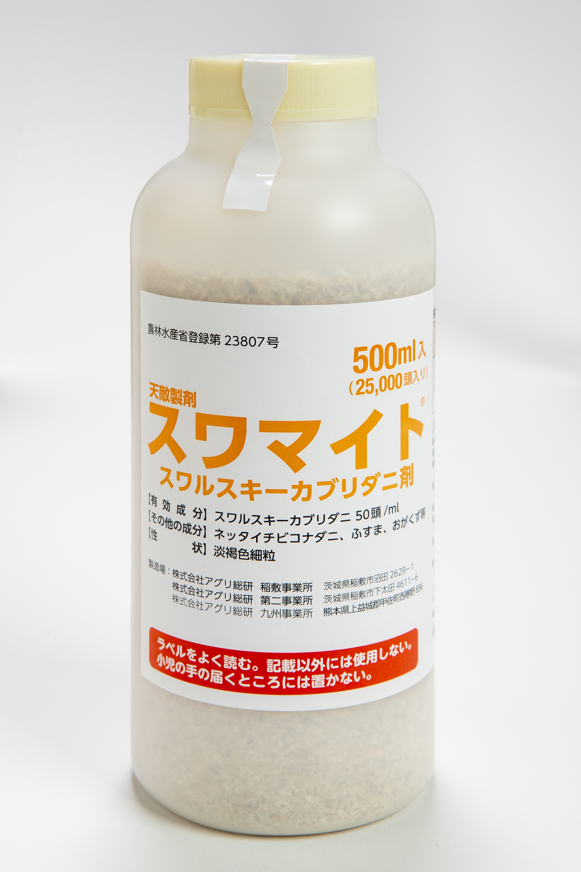 | 商品詳細 | 商品名:スワマイト 農薬の種類:スワルスキーカブリダニ剤 学名:Amblyseius swirskii 農林水産省登録第23807号 JANコード:4562297520921 |